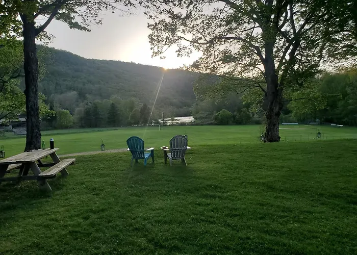 La villa Sunset Over The Junction Roscoe, situada a tan solo 8 minutos a pie del Museo del Ferrocarril O&W de Roscoe, cuenta con un patio con vistas a las montañas.